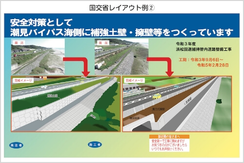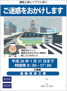景観や工事内容がひと目で伝わるイラストやレイアウトで地域住民の理解と協力を。